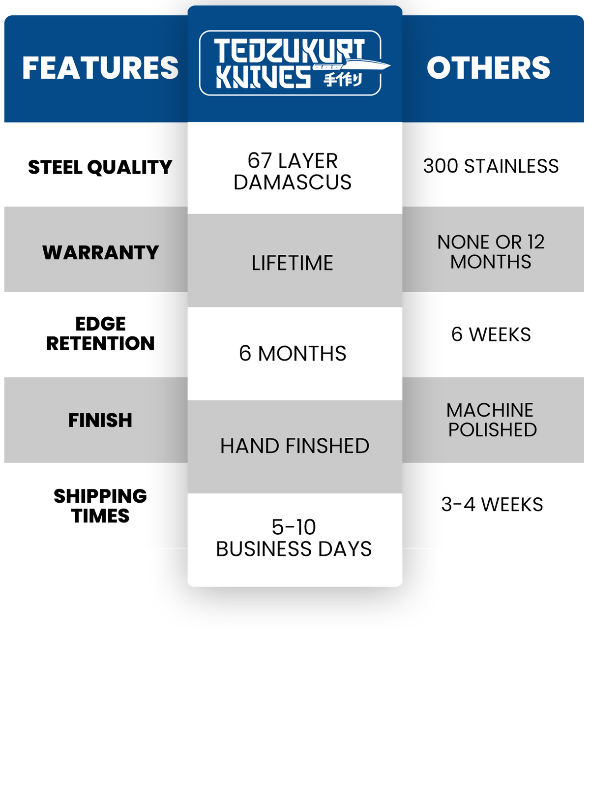 By following these guidelines, you can ensure that your Tedzukuri Knives remain a reliable and durable tool in your kitchen for years to come.