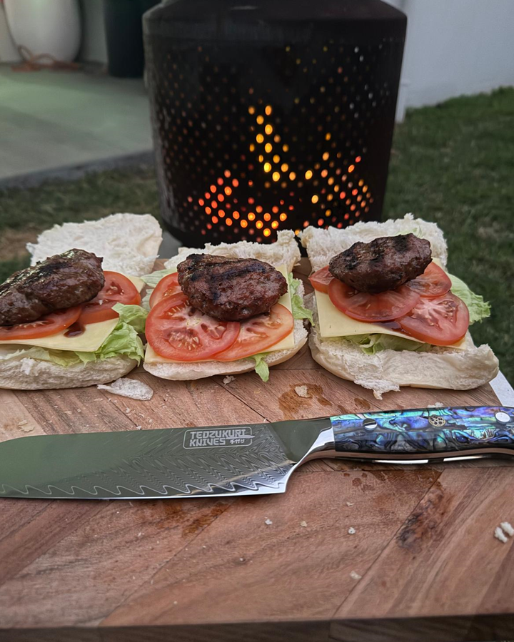 Awabi Steak Knives - 67 Layer Japanese Damascus with Abalone + Acrylic