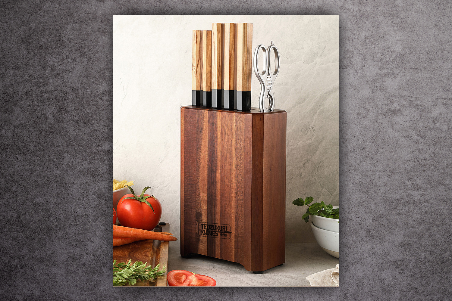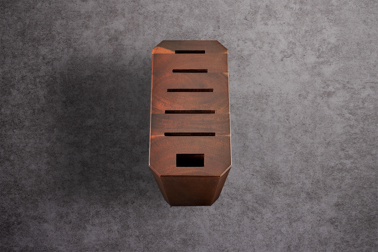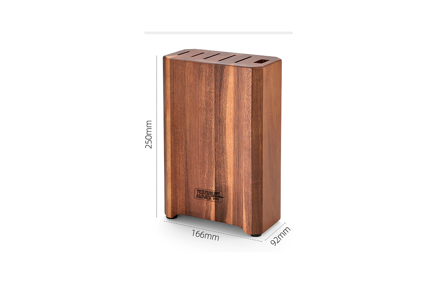 This 6-slot knife block is crafted from rich, natural acacia wood with a clean rectangular profile that suits any kitchen bench. Designed to securely hold your essential knives while keeping them within easy reach, it blends form and function effortlessly.