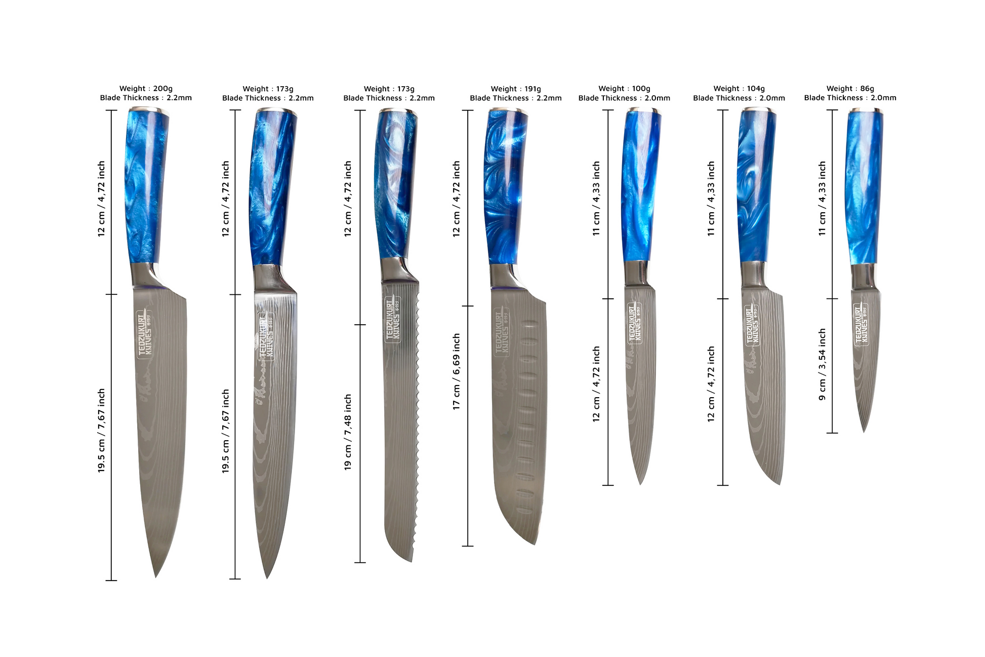 Epokishi 3,5 & 7 Piece Set - High Carbon Stainless Steel with Blue Acrylic