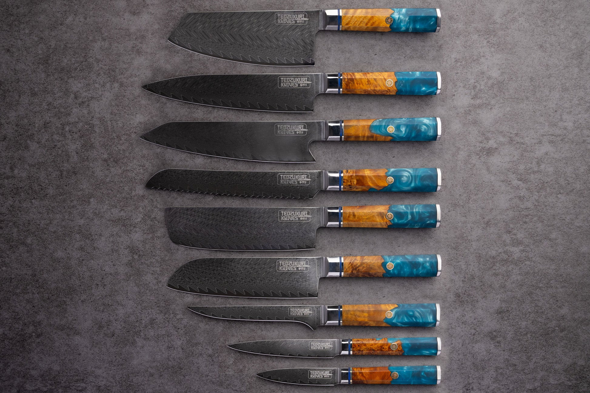 Kaigan 9 Piece Set - 67 Layer Japanese Damascus with Burlwood + Acrylic
