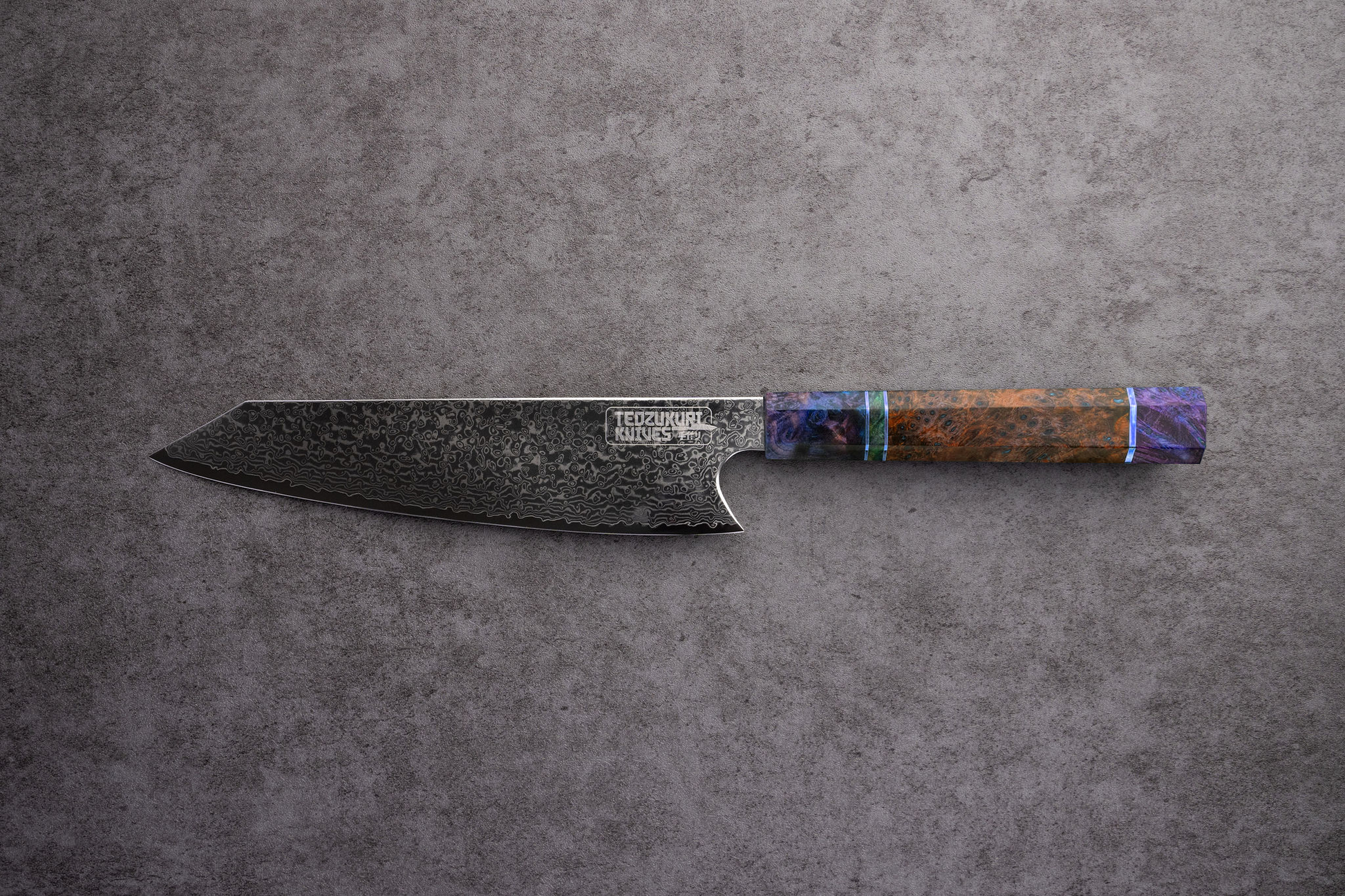 Niji Kritsuke 210mm 67 Layer Japanese Damascus with Natural Dyed Burlwood
